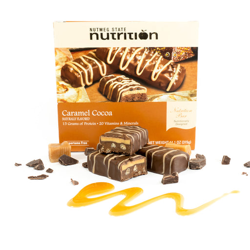 Introducing Nutmeg State Nutrition's Caramel Cocoa Weight Loss Protein Bar – a decadent and nutritious meal replacement option designed to suppor...