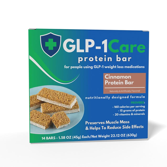 Need a delicious snack that won't disrupt your GLP-1 regimen? Try GLP-1Care Cinnamon Bars! These protein-packed bars are specifically designed to be compatible with GLP-1 and provide 15g of protein and only 160 calories per serving. With 14 servings per box, you'll have plenty to last you through your busy week.